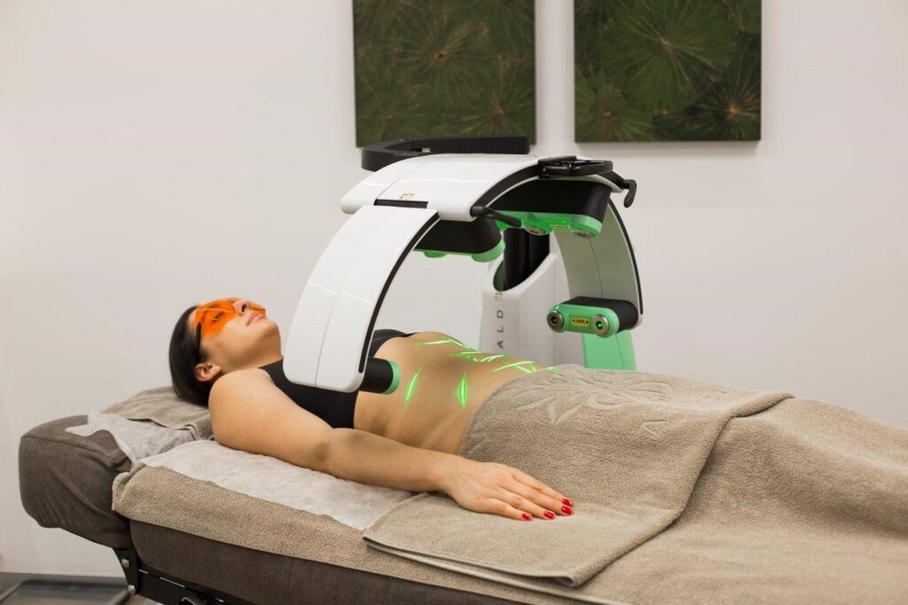 EMERALD is a low-level, non-thermal laser which emits 10 x 532nm green lasers on to the skin, to break down hypertrophic adipocytes (fat cells) without killing them – this keeps the hormonal system balanced. The energy transfer from the laser triggers fat cells to release their fatty content, making the fat cells lean and healthy again.